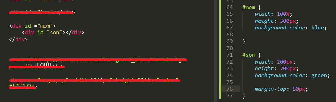 그림을 보면 son에 margin - top: 50px; 를 줬으니 son만 위로 50만큼 올라가야 될 것을 예상이 됩니다.