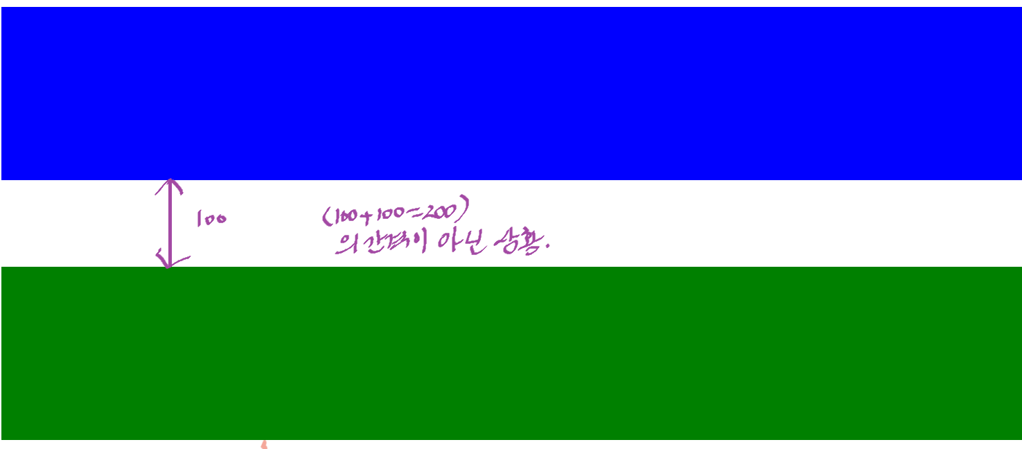 각각 one과 two태그는 마진 바텀 100, 마진 바텀 100을 주었으므로 그 합으로 200의 간격이 유지돼야 된다고 생각이 된다.